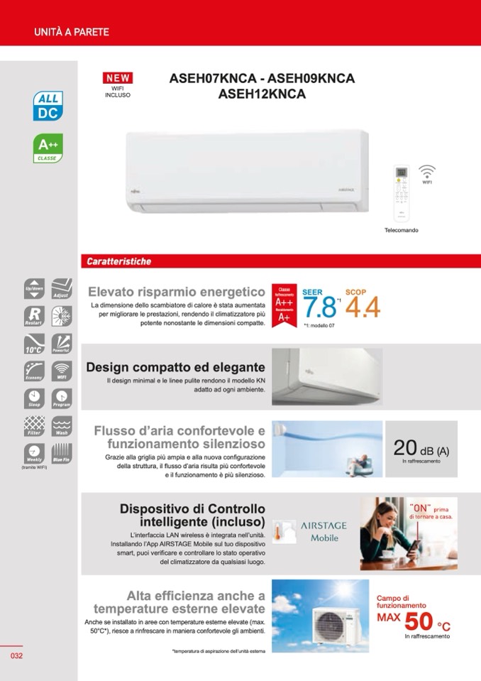 50°C*), riesce a rinfrescare in maniera confortevole gli ambienti.