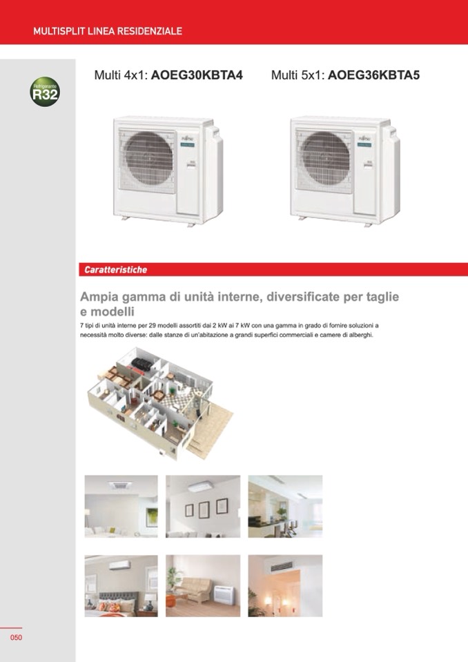 7 tipi di unità interne per 29 modelli assortiti dai 2 kW ai 7 kW con una gamma in grado di fornire soluzioni a