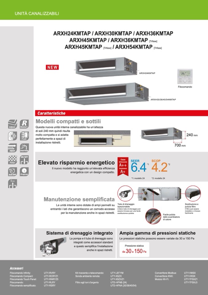 Le pressioni statiche possono essere variate da 30 a 150 Pa