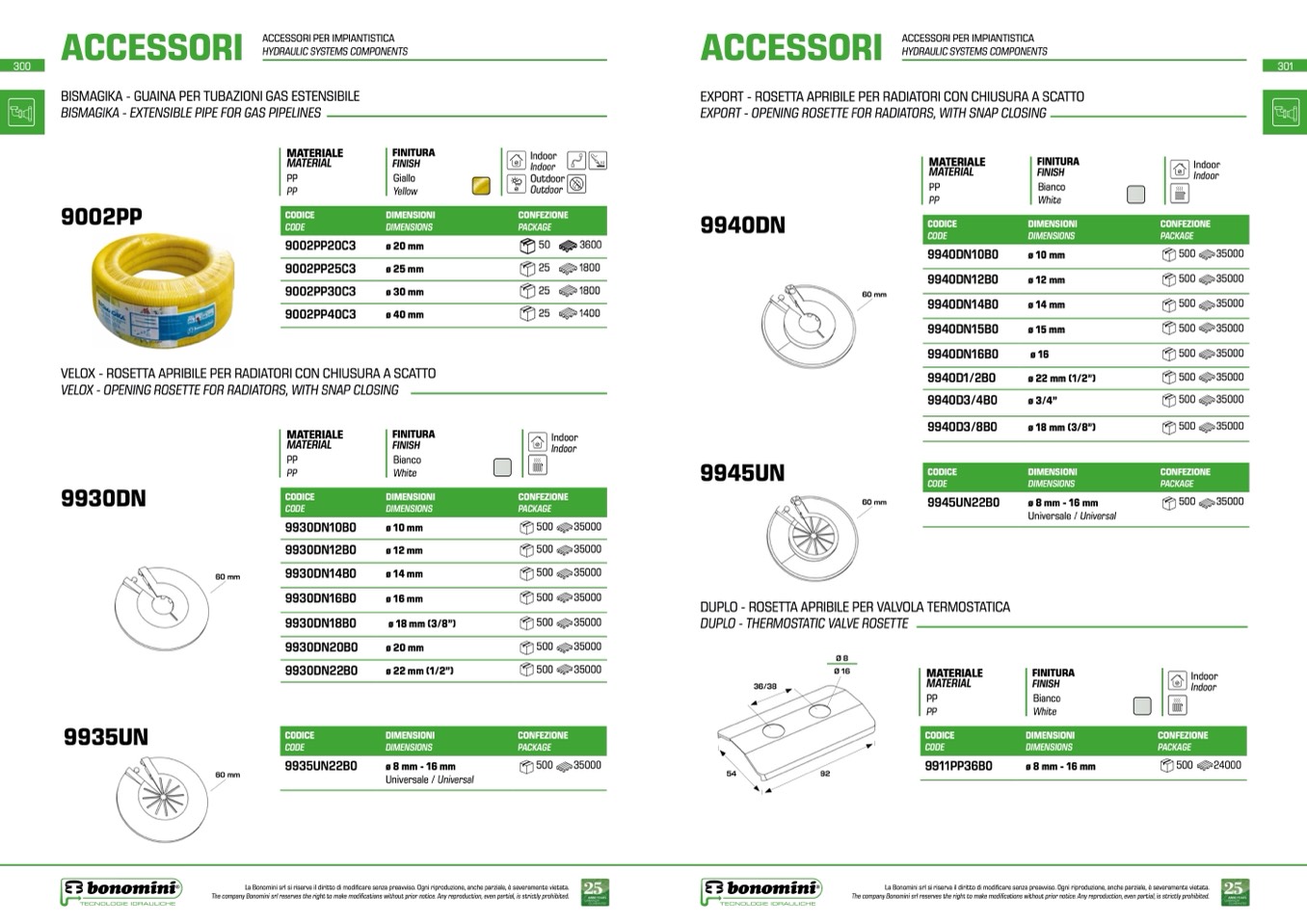 La Bonomini srl si riserva il diritto di modificare senza preavviso. Ogni riproduzione, anche parziale, è severamente vietata.
