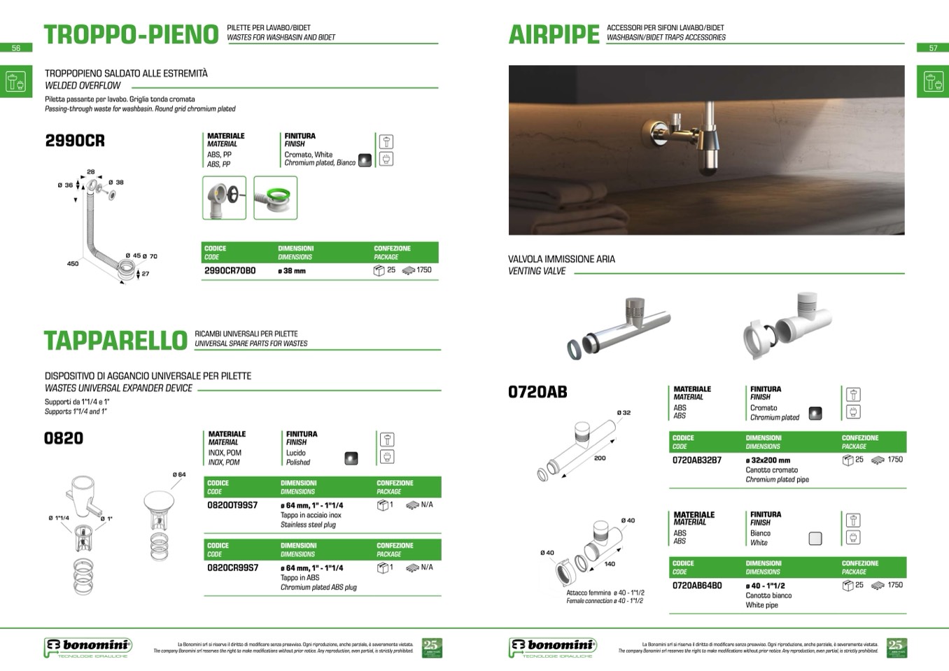 La Bonomini srl si riserva il diritto di modificare senza preavviso. Ogni riproduzione, anche parziale, è severamente vietata.