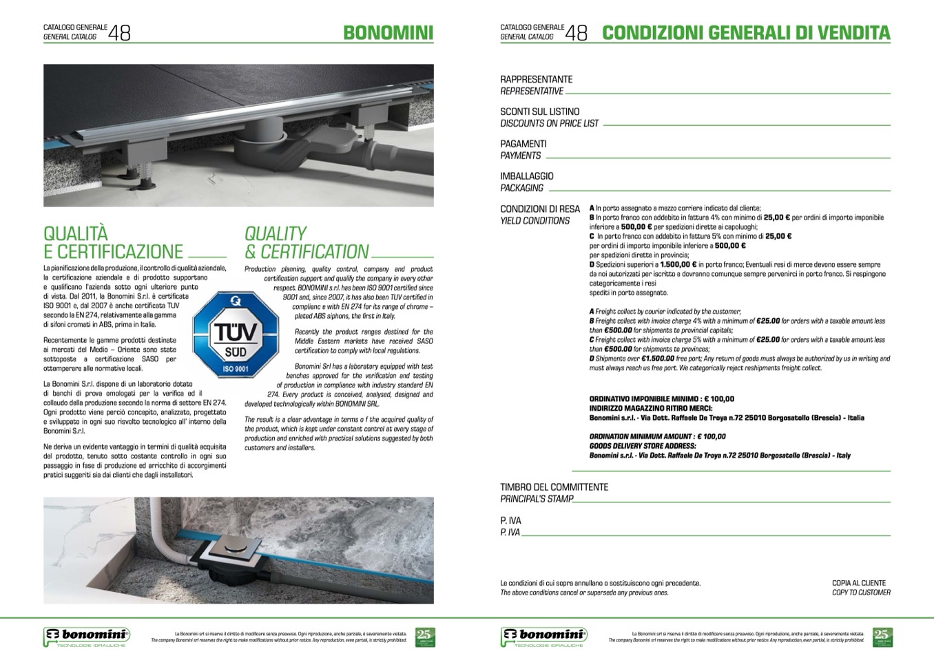 respect. BONOMINI s.r.l. has been ISO 9001 certified since