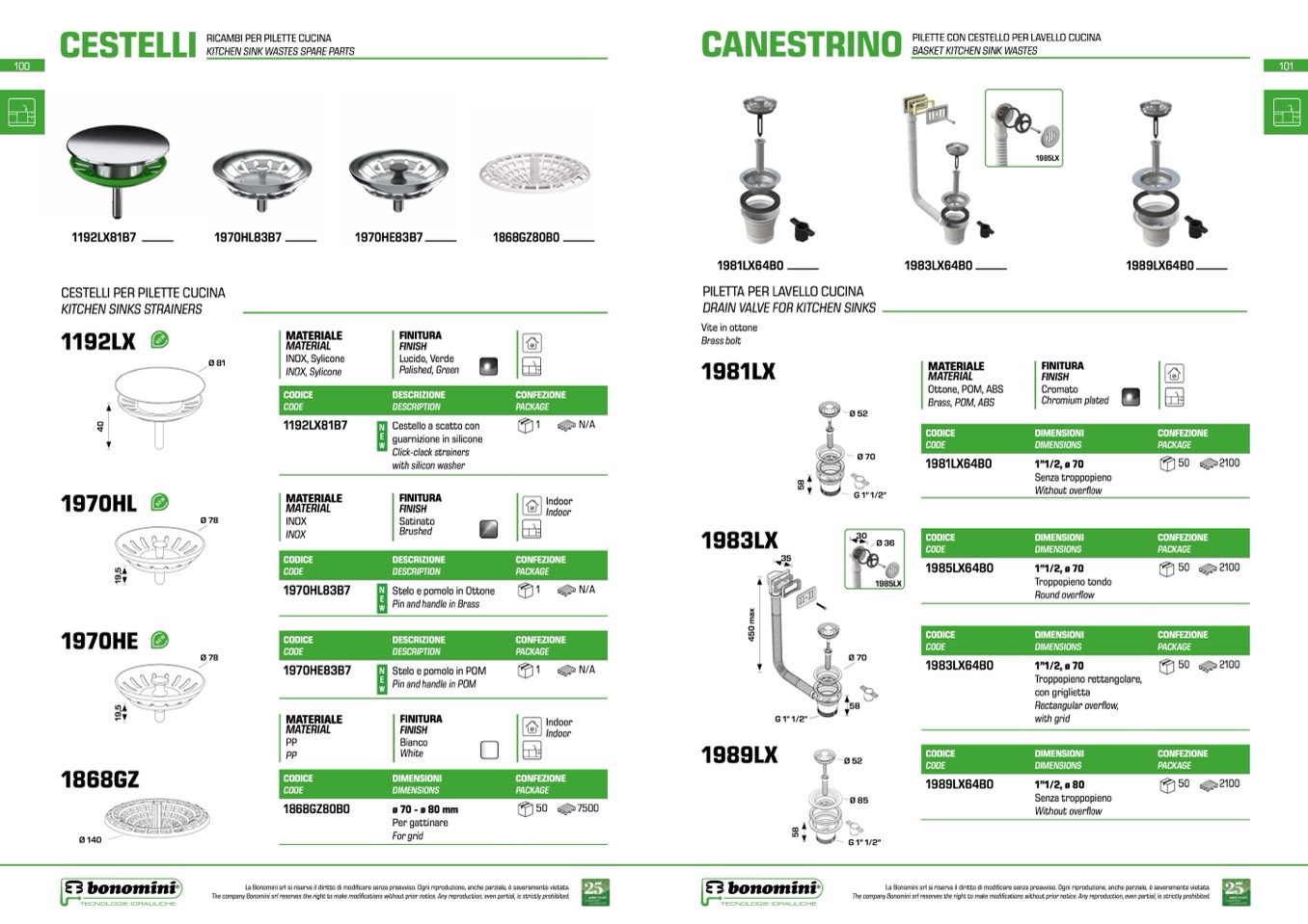 La Bonomini srl si riserva il diritto di modificare senza preavviso. Ogni riproduzione, anche parziale, è severamente vietata.