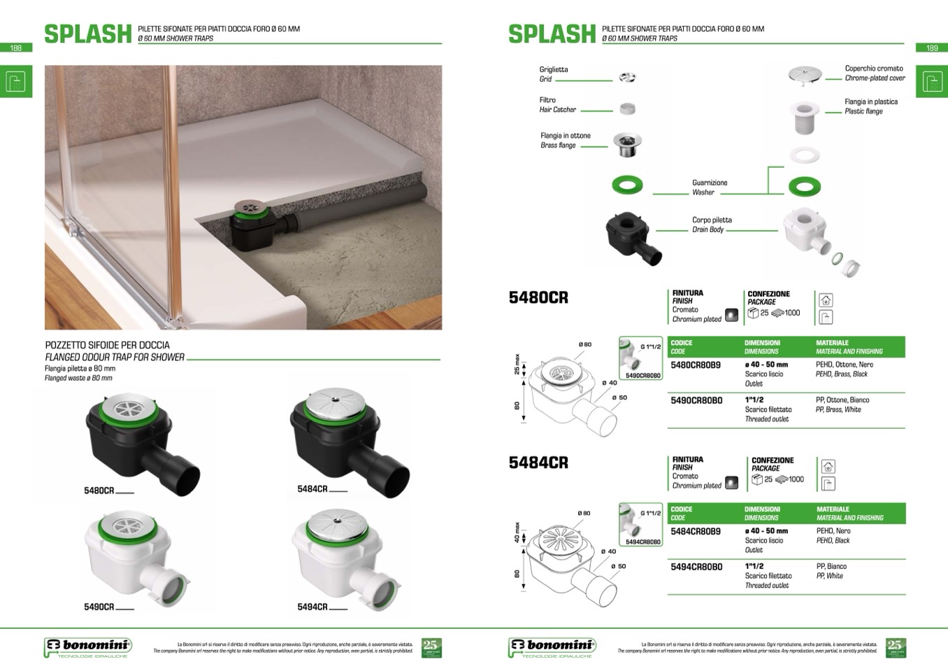 PILETTE SIFONATE PER PIATTI DOCCIA FORO Ø 60 MM