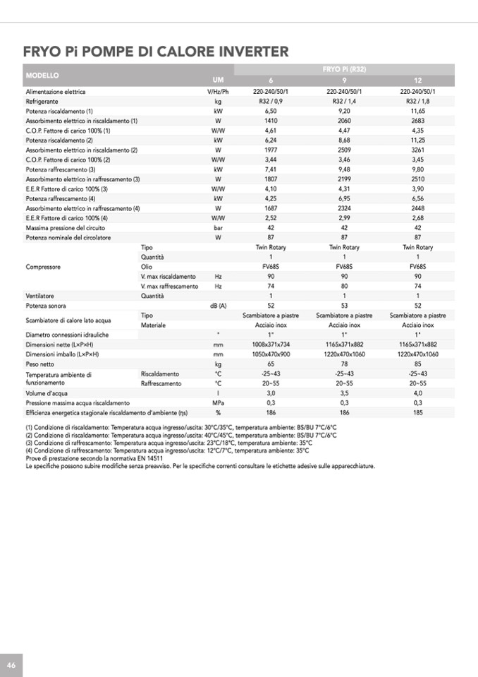 (2) Condizione di riscaldamento: Temperatura acqua ingresso/uscita: 40°C/45°C, temperatura ambiente: BS/BU 7°C/6°C