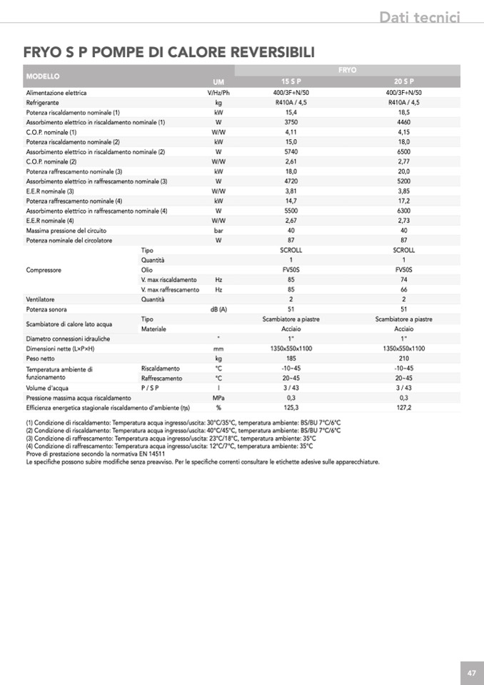 (2) Condizione di riscaldamento: Temperatura acqua ingresso/uscita: 40°C/45°C, temperatura ambiente: BS/BU 7°C/6°C