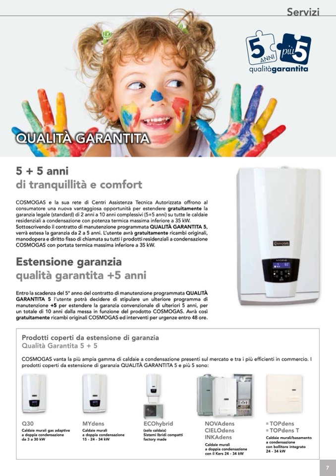 garanzia legale (standard) di 2 anni a 10 anni complessivi (5+5 anni) su tutte le caldaie