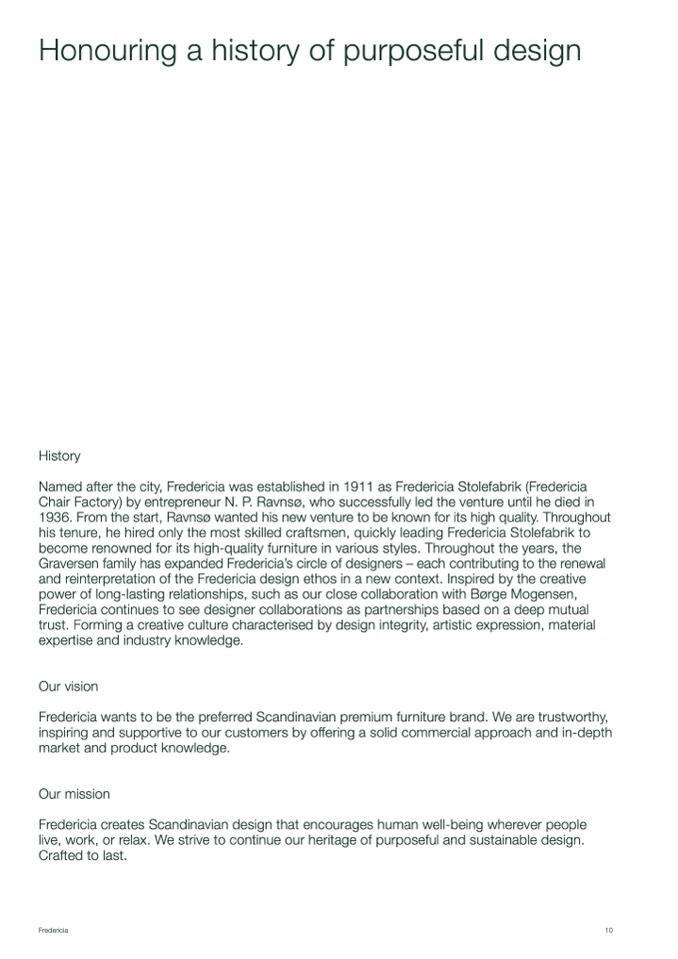 Fredericia wants to be the preferred Scandinavian premium furniture brand. We are trustworthy,