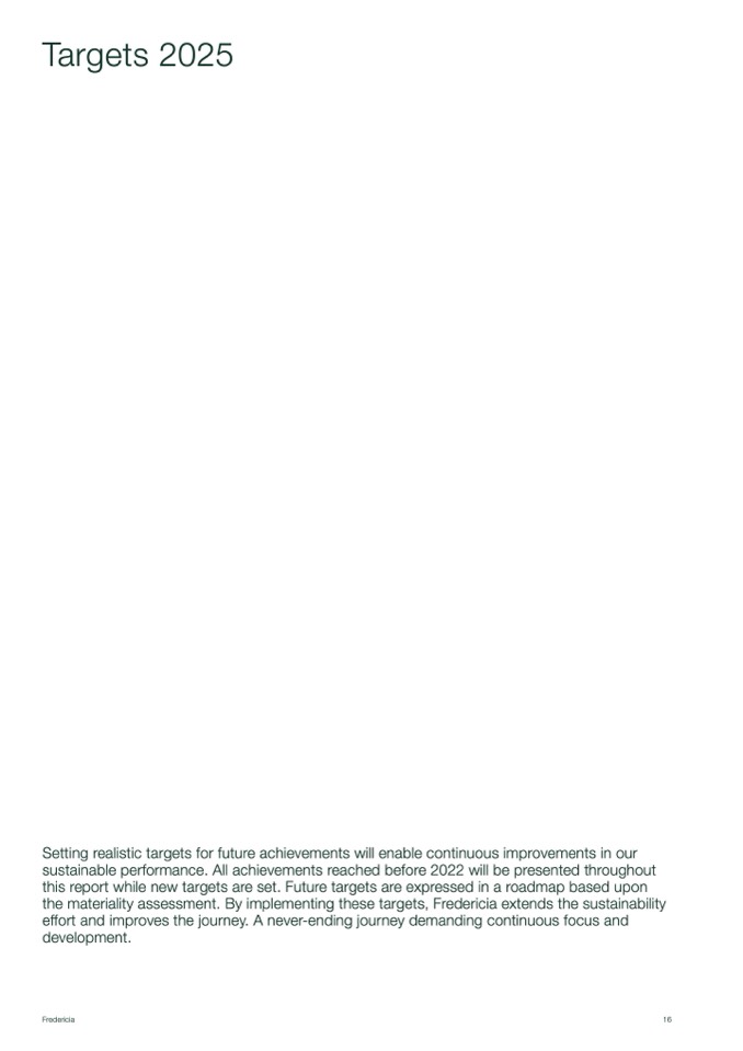 the materiality assessment. By implementing these targets, Fredericia extends the sustainability