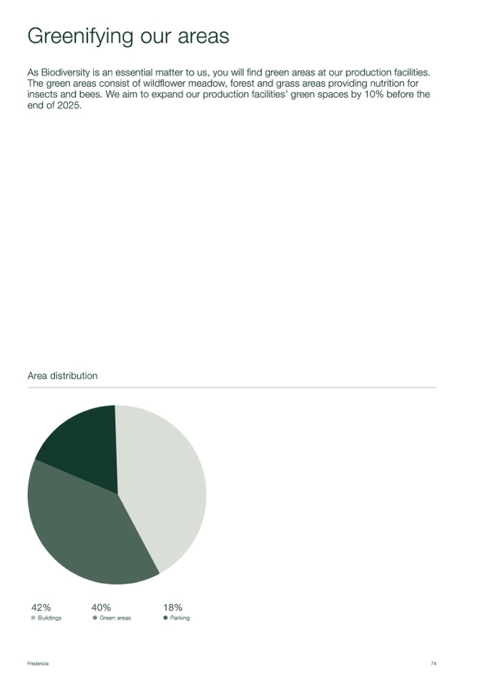 insects and bees. We aim to expand our production facilities’ green spaces by 10% before the