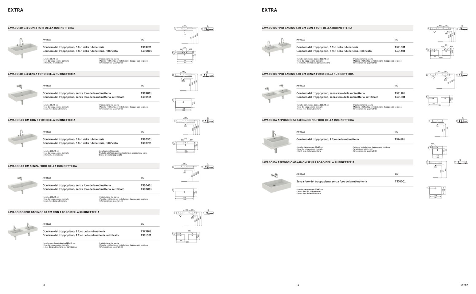 LAVABO DOPPIO BACINO 120 CM SENZA FORO DELLA RUBINETTERIA