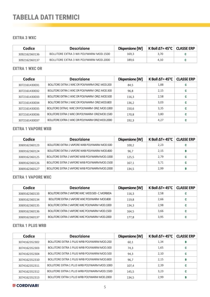 BOLLITORE EXTRA 1 WXC OR POLYWARM ORIZ.MOD.2000