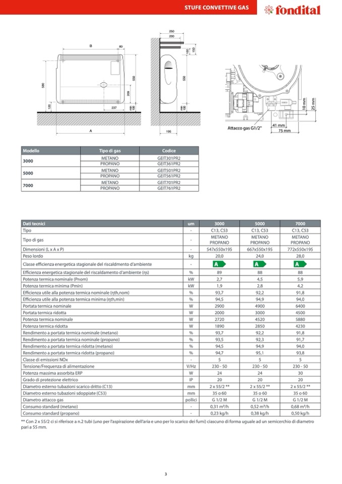 ** Con 2 x 55/2 ci si riferisce a n.2 tubi (uno per l'aspirazione dell’aria e uno per lo scarico dei fumi) ciascuno di forma uguale ad un semicerchio di diametro