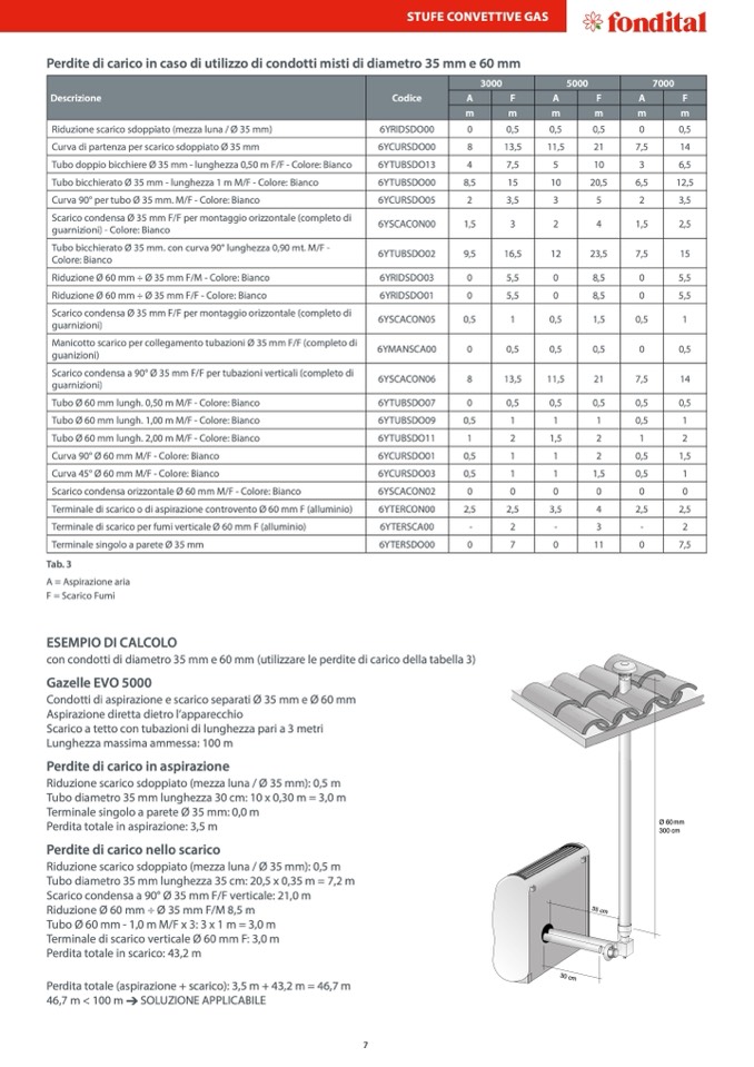 con condotti di diametro 35 mm e 60 mm (utilizzare le perdite di carico della tabella 3)