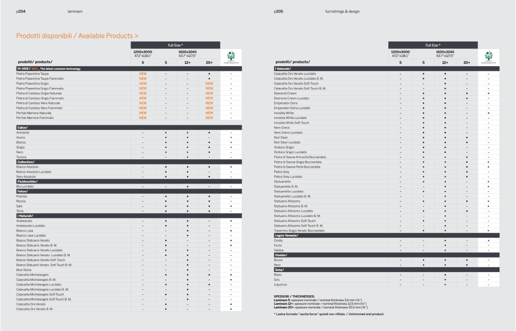 Laminam 5: spessore nominale / nominal thickness 5,6 mm (1⁄4”)