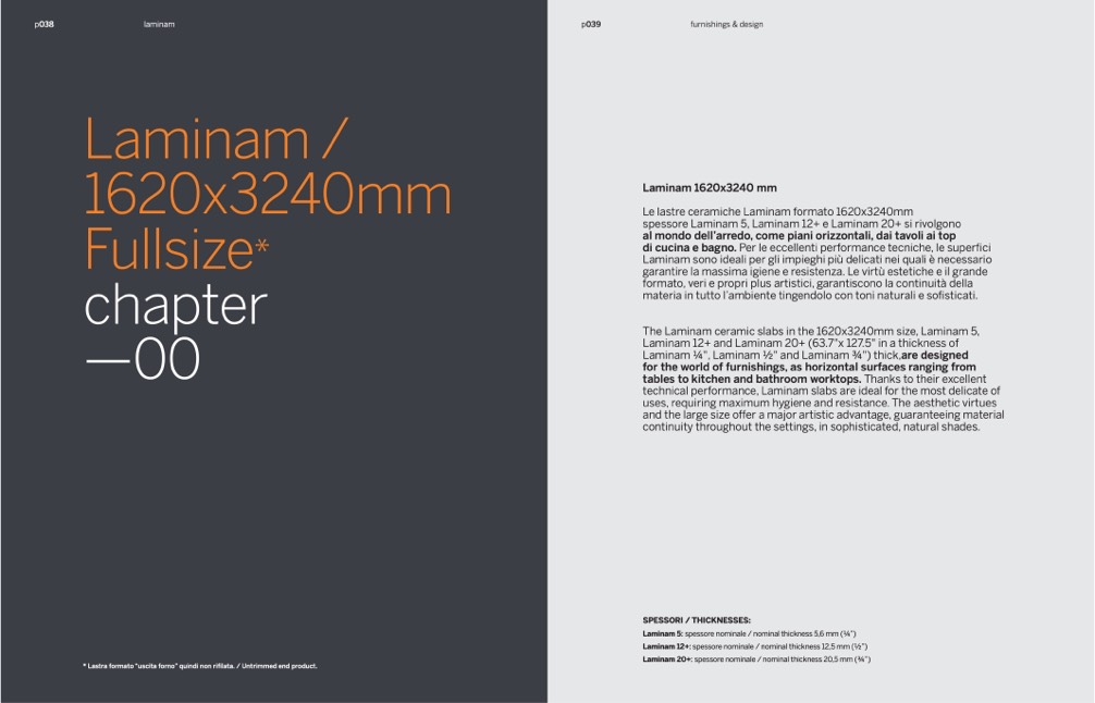 Laminam 1⁄4", Laminam 1⁄2" and Laminam 3⁄4") thick,are designed