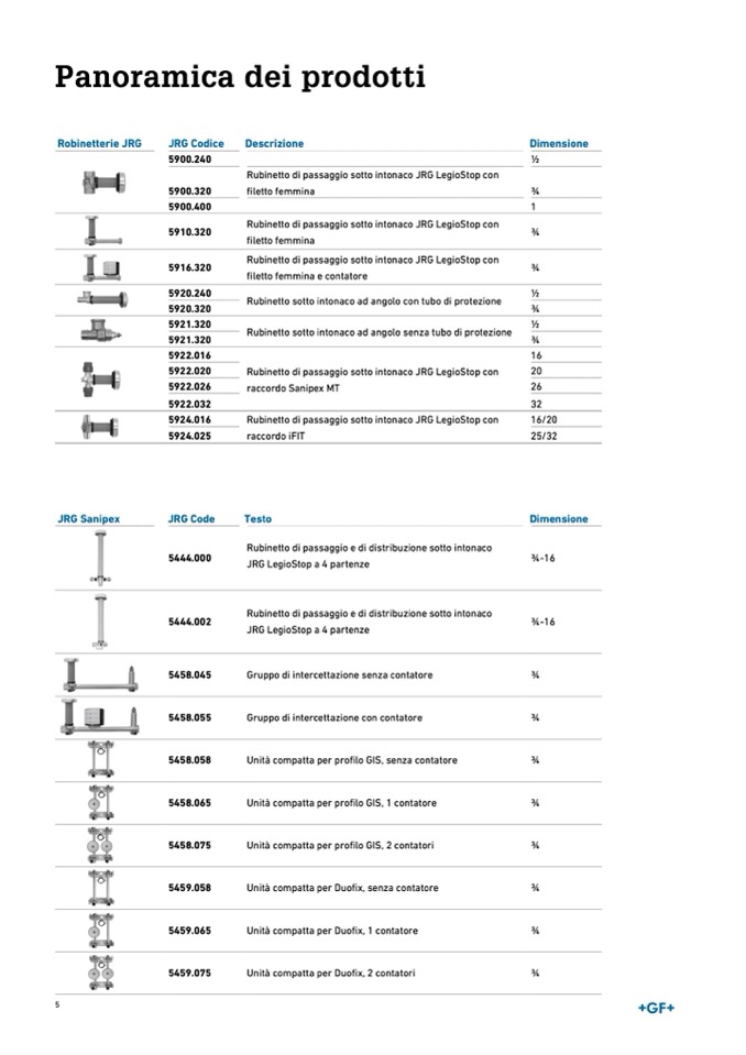 Rubinetto di passaggio e di distribuzione sotto intonaco