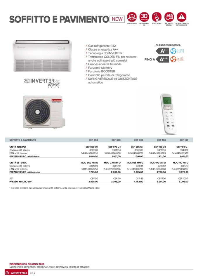 * Il prezzo di listino del set comprende unità esterna, unità interna e TELECOMANDO ECO.