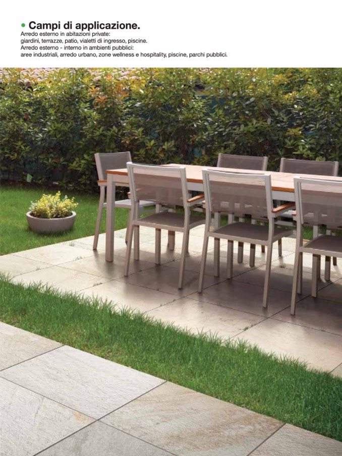 Новое решение из утолщенного керамогранита для оформления наружных пространств.