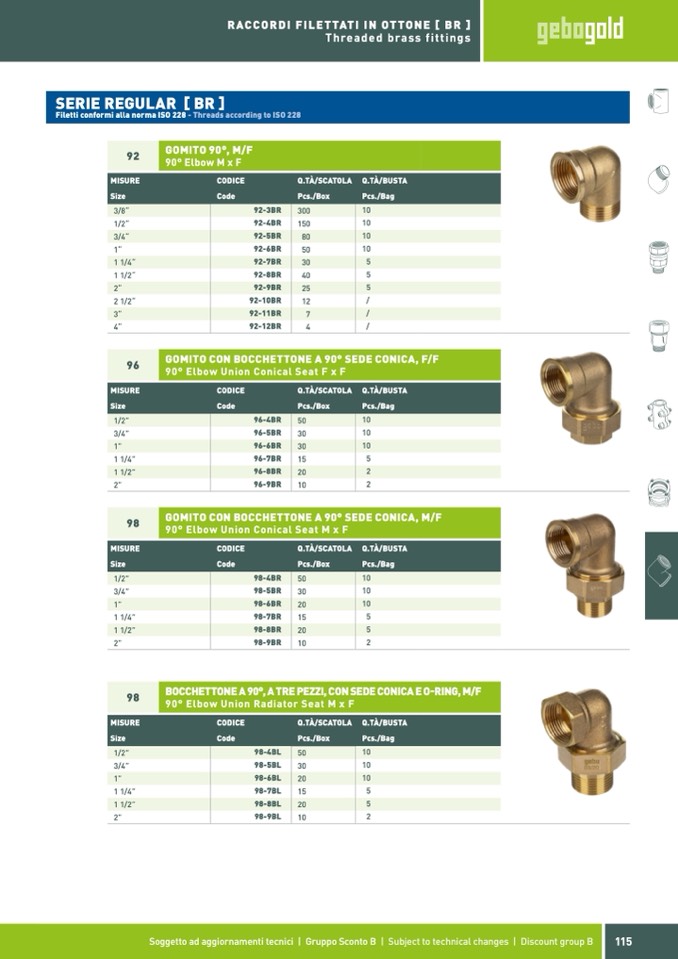Filetti conformi alla norma ISO 228 - Threads according to ISO 228