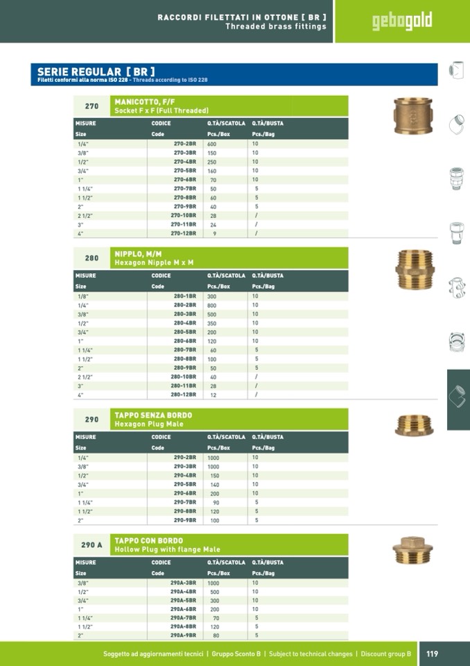 Filetti conformi alla norma ISO 228 - Threads according to ISO 228
