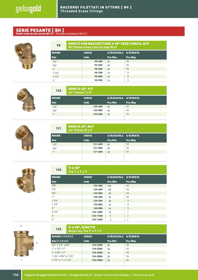 Filetti conformi alla norma ISO 7/1 - Threads according to ISO 7/1