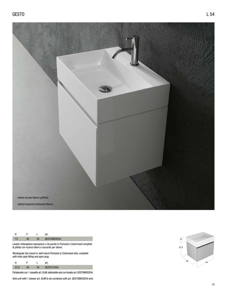 Portalavabo con 1 cassetto art. SLIM, abbinabile solo con lavabo art. GESTOMOOD54.