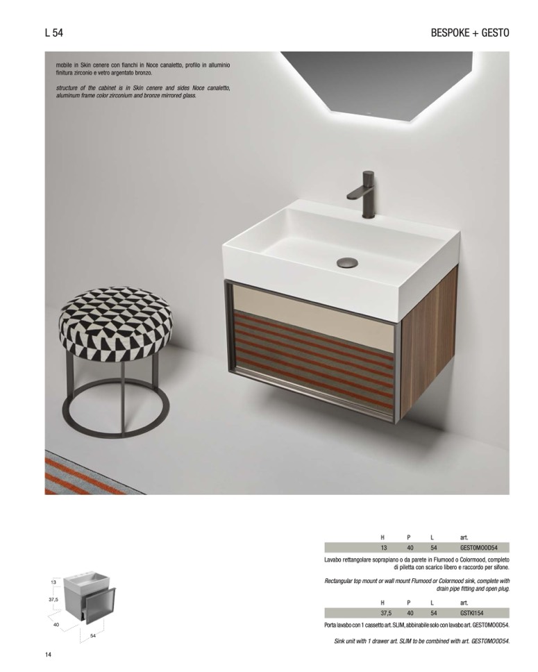 Porta lavabo con 1 cassetto art. SLIM, abbinabile solo con lavabo art. GESTOMOOD54.