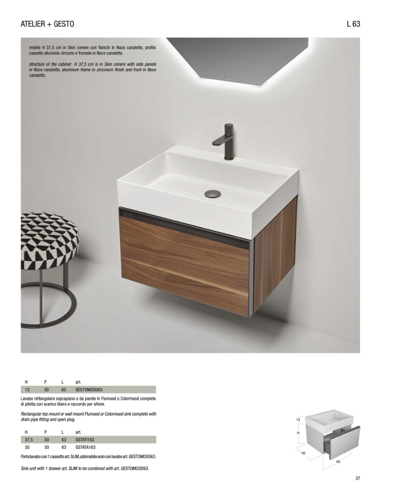 Porta lavabo con 1 cassetto art. SLIM, abbinabile solo con lavabo art. GESTOMOOD63.