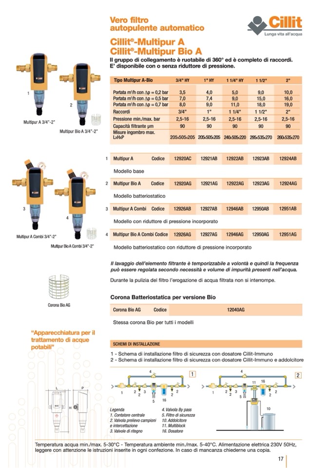 1 - Schema di installazione filtro di sicurezza con dosatore Cillit-Immuno