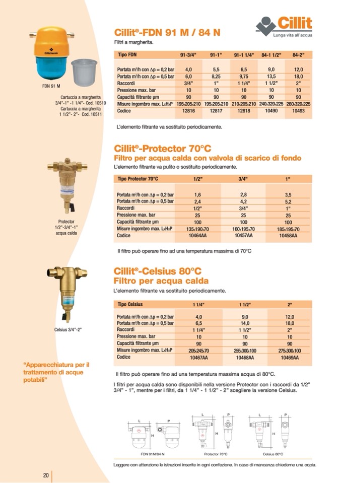 3/4” - 1”, mentre per i filtri, da 1 1/4” - 1 1/2” - 2” scegliere la versione Celsius.