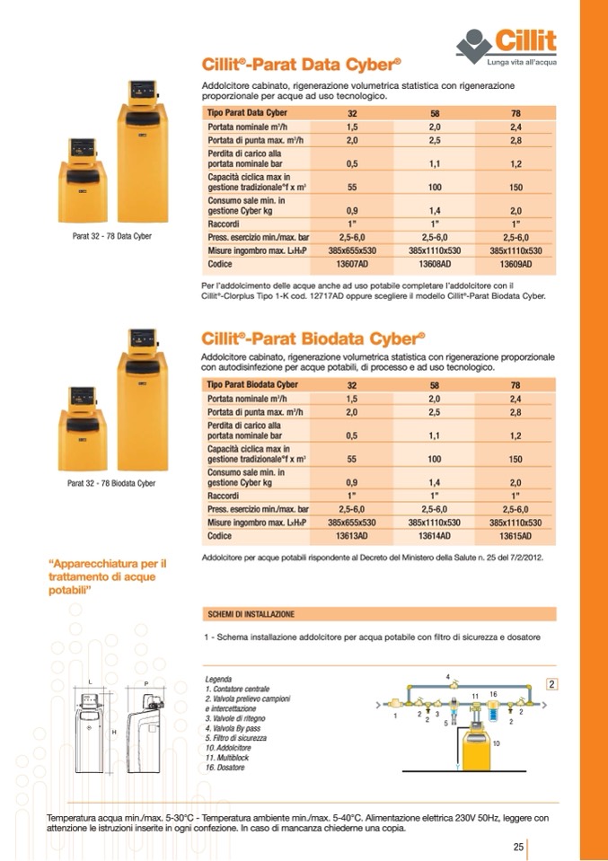 Addolcitore per acque potabili rispondente al Decreto del Ministero della Salute n. 25 del 7/2/2012.