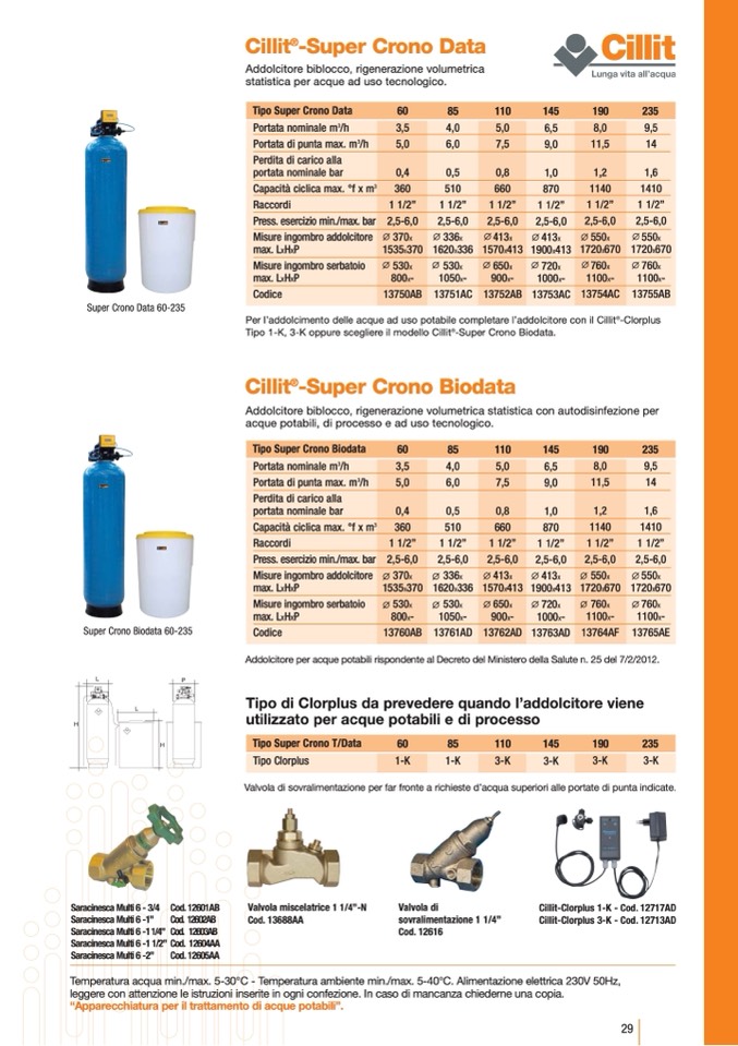 Tipo 1-K, 3-K oppure scegliere il modello Cillit