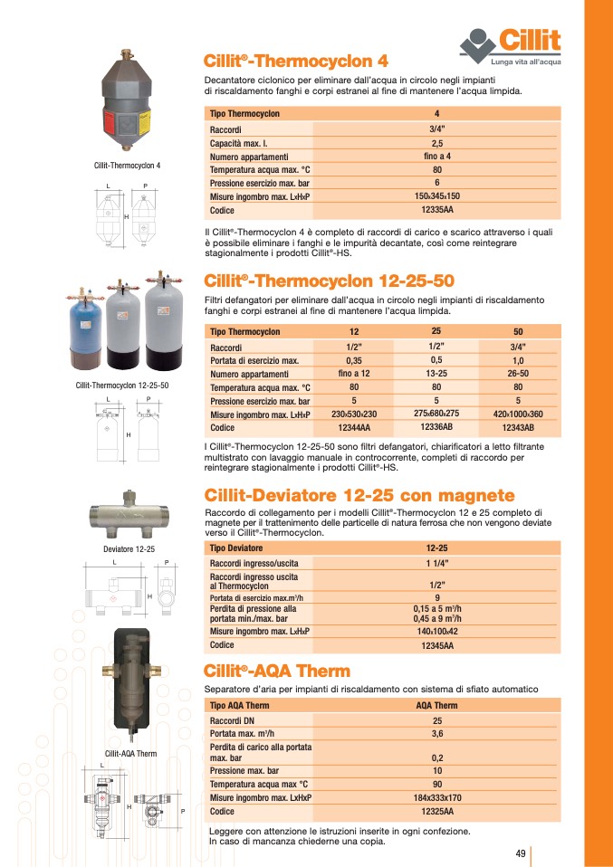 -Thermocyclon 12-25-50 sono filtri defangatori, chiarificatori a letto filtrante