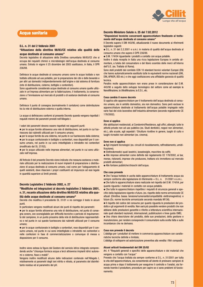 G D.M. 174/04 riguardante i prodotti a contatto con acqua potabile.