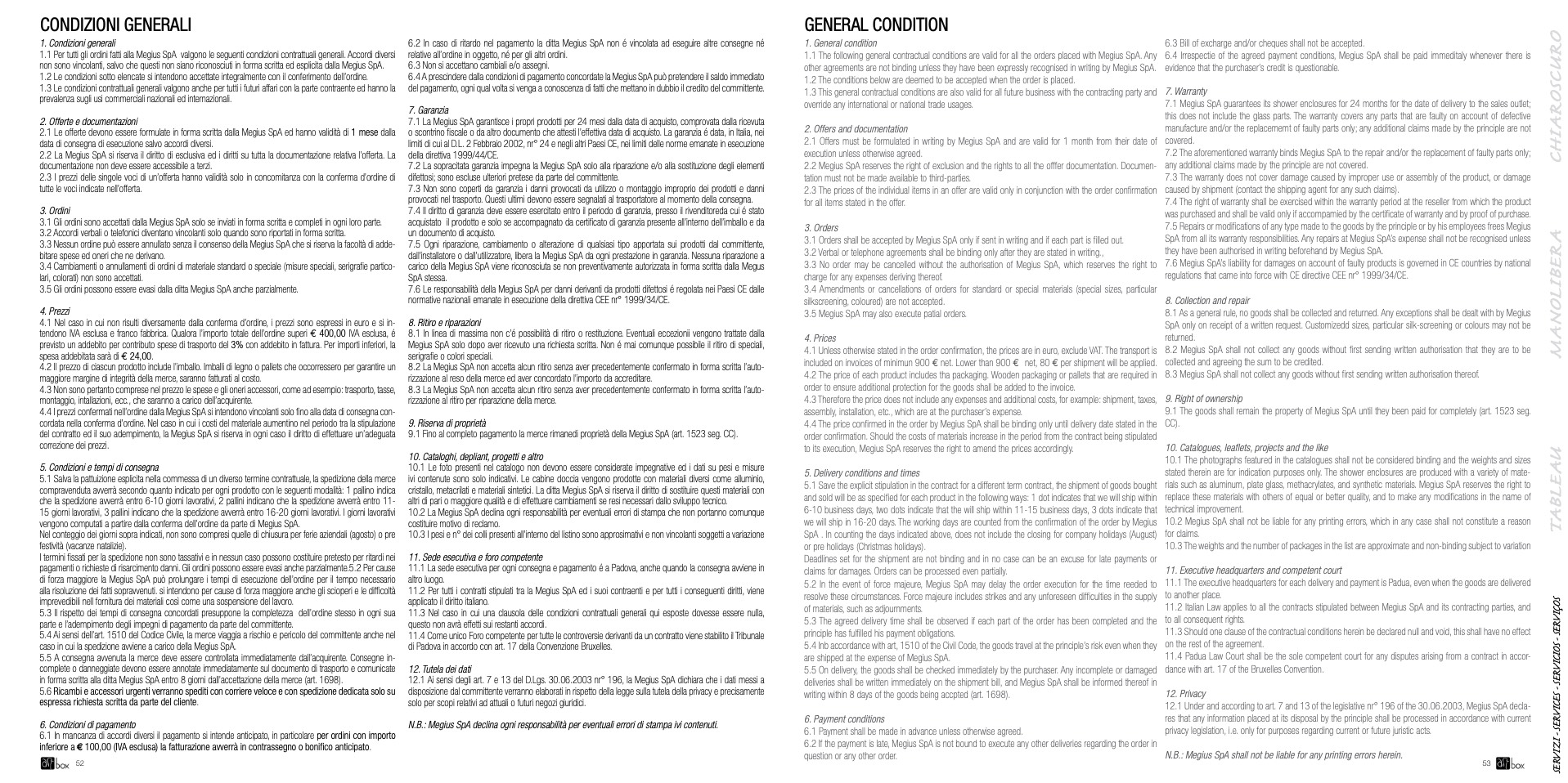 10.2 La Megius SpA declina ogni responsabilità per eventuali errori di stampa che non portanno comunque