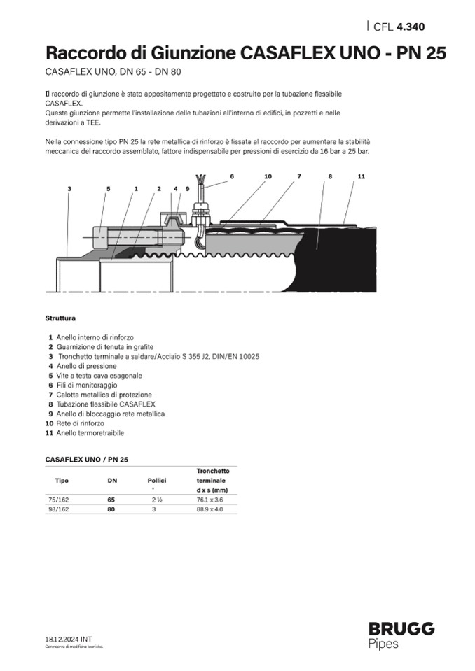 Nella connessione tipo PN 25 la rete metallica di rinforzo
