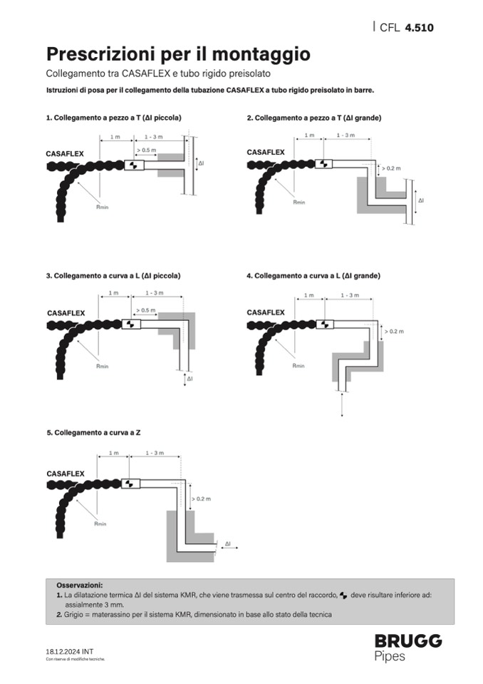 Istruzioni di posa per il collegamento della tubazione CASAFLEX a tubo rigido preisolato in barre.