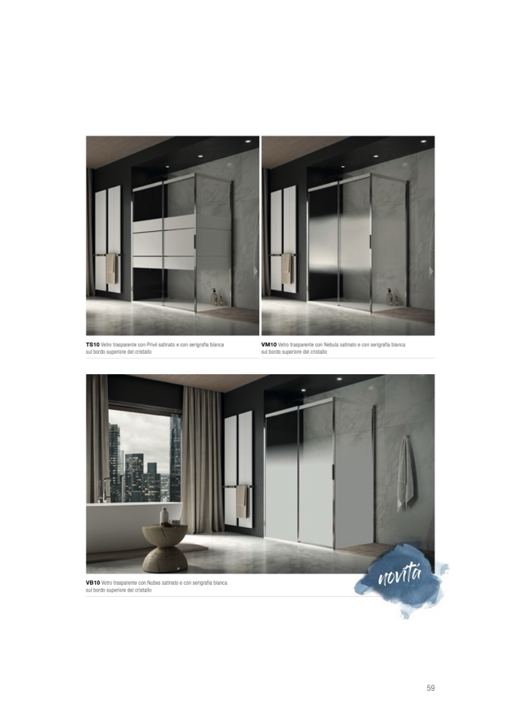 VM10 Vetro trasparente con Nebula satinato e con serigrafia bianca