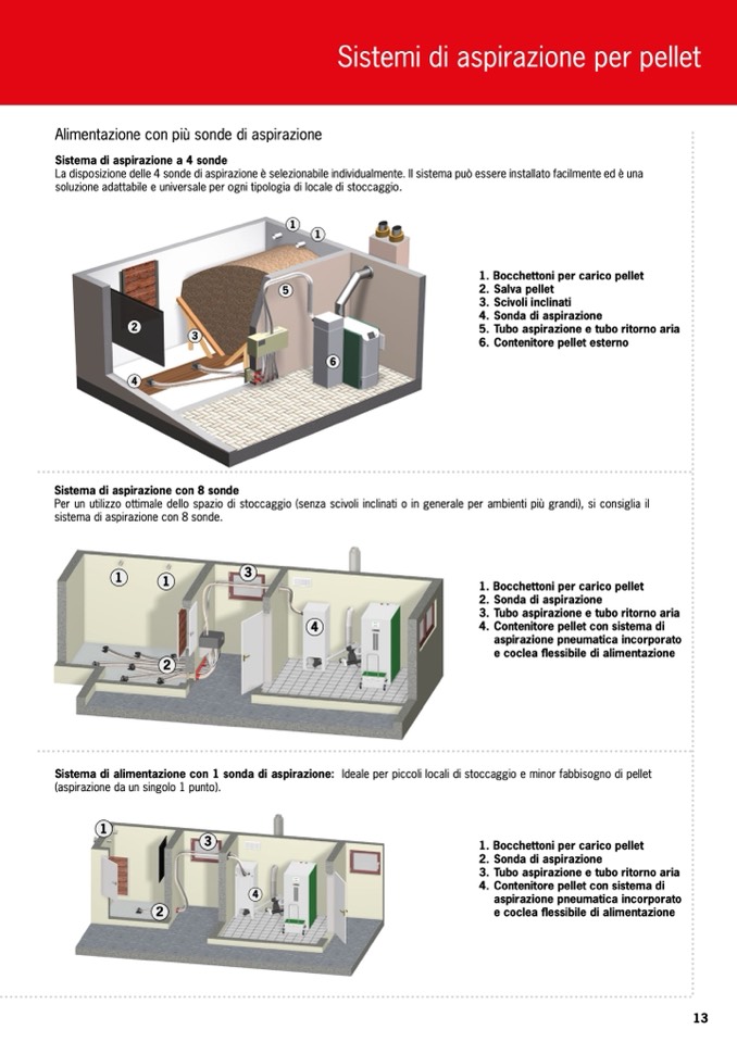 Sistema di alimentazione con 1 sonda di aspirazione: Ideale per piccoli locali di stoccaggio e minor fabbisogno di pellet
