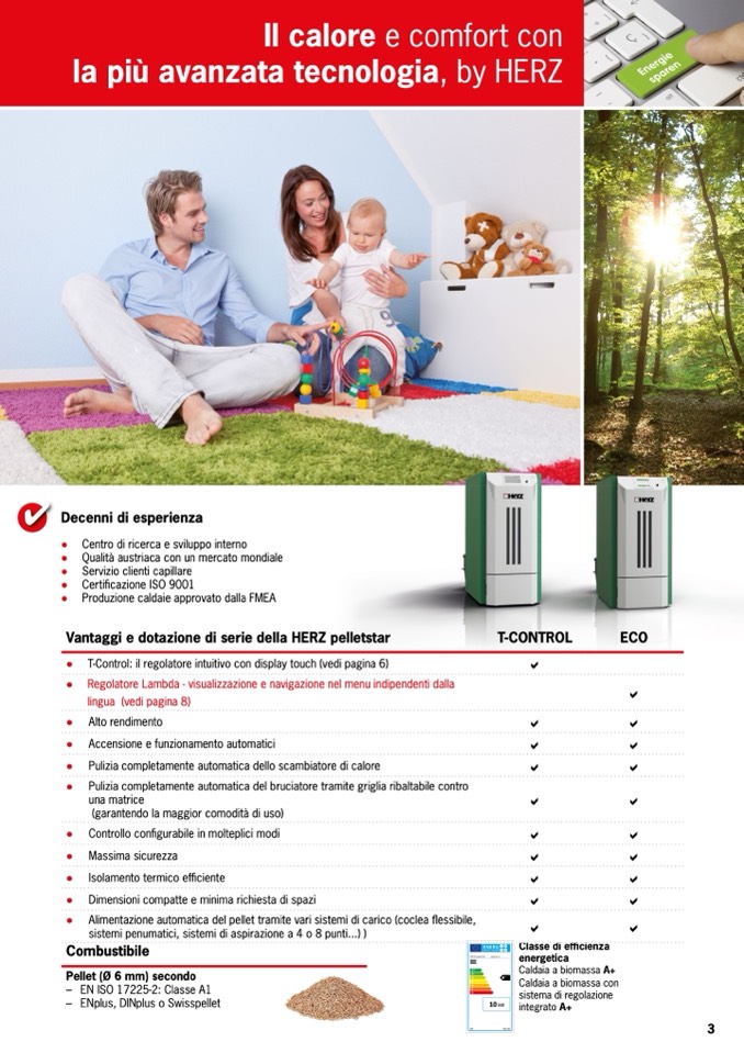 Vantaggi e dotazione di serie della HERZ pelletstar