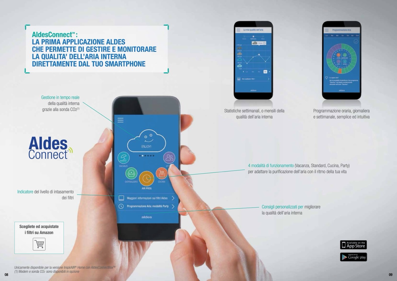4 modalità di funzionamento (Vacanza, Standard, Cucina, Party)