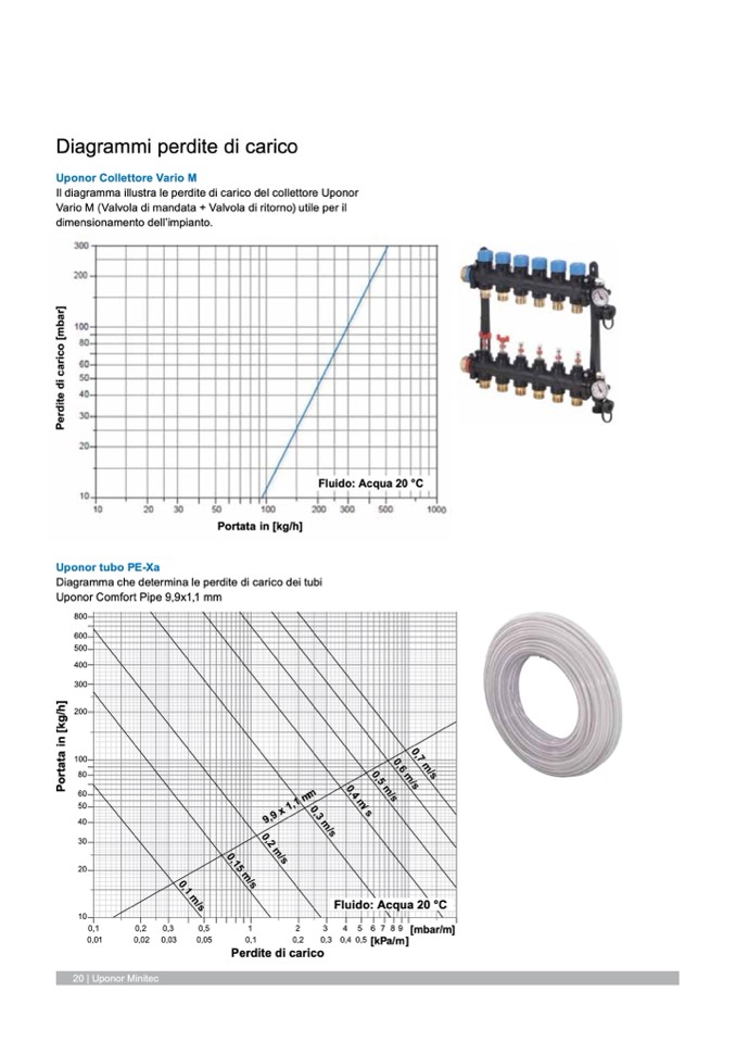 Il diagramma illustra le perdite di carico del collettore Uponor