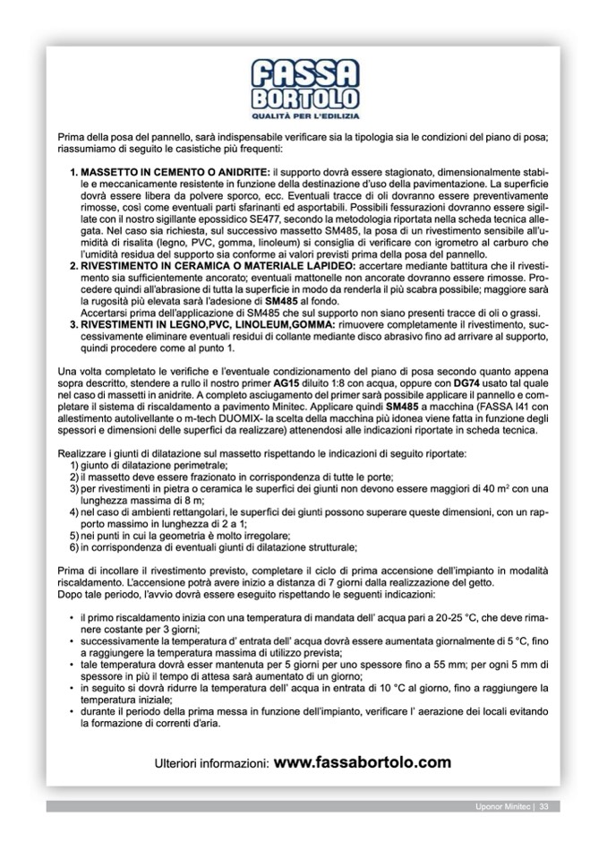 pletare il sistema di riscaldamento a pavimento Minitec. Applicare quindi SM485 a macchina (FASSA I41 con