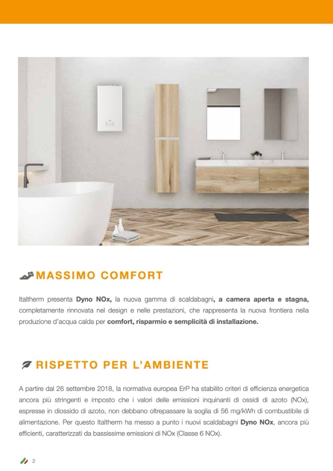 alimentazione. Per questo Italtherm ha messo a punto i nuovi scaldabagni Dyno NOx, ancora più