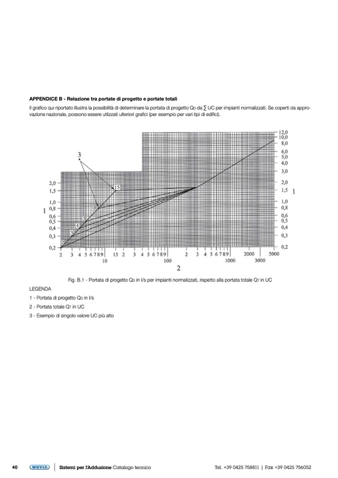 Il grafico qui riportato illustra la possibilità di determinare la portata di progetto QD da ∑ UC per impianti normalizzati. Se coperti da appro-