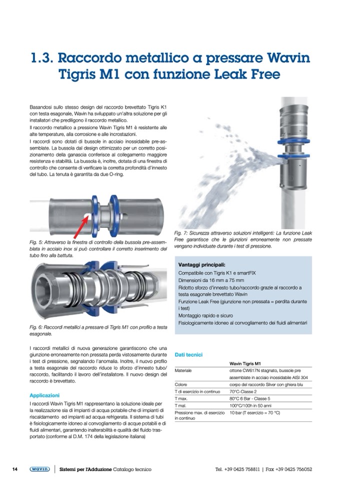 Fig. 6: Raccordi metallici a pressare di Tigris M1 con profilo a testa