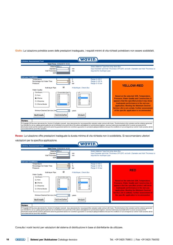 Giallo: La tubazione potrebbe avere delle prestazioni inadeguate, i requisiti minimi di vita richiesti potrebbero non essere soddisfatti.