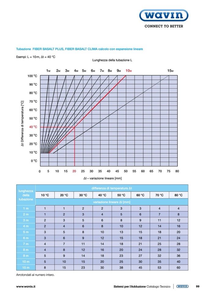 Tubazione FIBER BASALT PLUS, FIBER BASALT CLIMA calcolo con espansione lineare