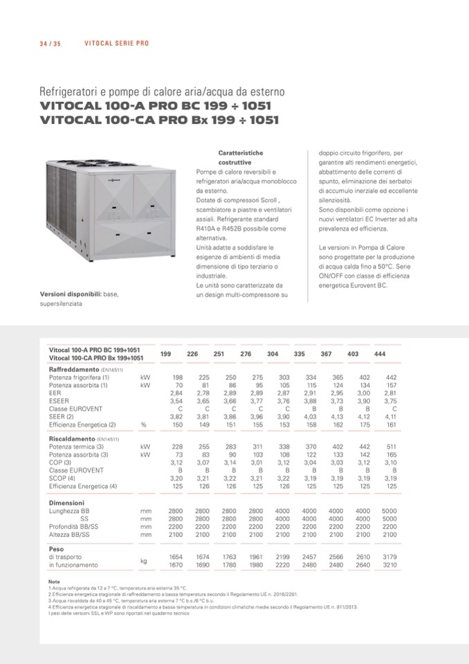 1.Acqua refrigerata da 12 a 7 °C, temperatura aria esterna 35 °C.